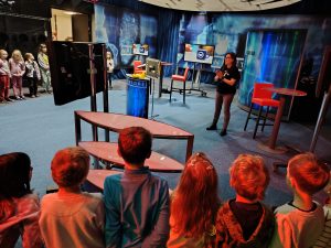 Dne 23. 10. 2025 jsme se s dětmi vydali do ČT Ostrava, abychom se podívali, jak to vypadá ve studiích, kde se natáčejí pořady pro dospělé i děti. Prohlédli jsme si studio, odkud se vysílají Události, Dobré ráno, Na stopě, Šikulové, Draci v hrnci a další. Pan zvukař, střihač i osvětlovač nám ukázali, jak náročná je příprava před natáčením a kolik práce je čeká po dotočení pořadu. Zkusili jsme si kouzlo se zeleným pozadím a byli jsme překvapeni, že jsme se najednou stali moderátory počasí nebo jsme se ocitli v pohádce. Děti si zkusily i moderovat zprávy pomocí čtecího zařízení. Prostě to bylo místo plné kouzel, techniky, kamer a šikovných lidí. Paní průvodkyně nám zodpověděla mnoho našich otázek a pan Wiglasz nám připravil překvapení. Byl to pohádkový kvíz a možnost vyrobit si večerníčkovou čepičku. Moc jsme si to užili a mnoho zajímavého jsme se dozvěděli.