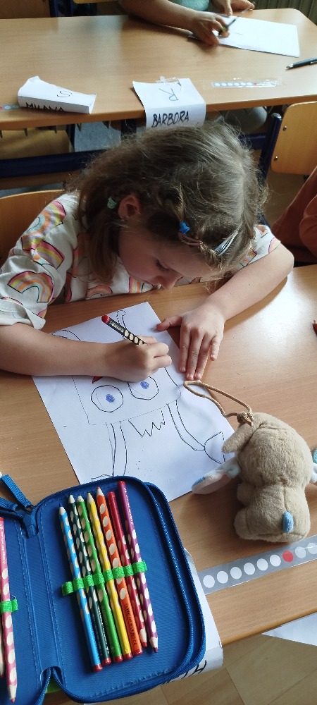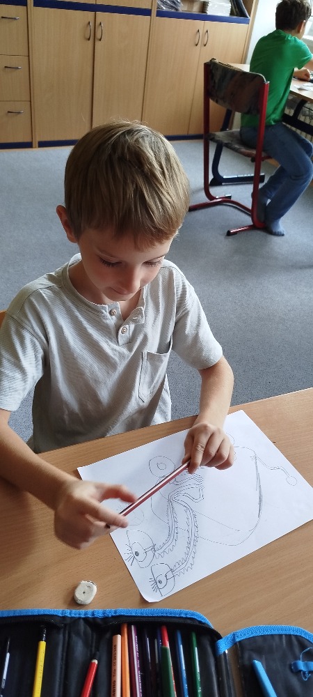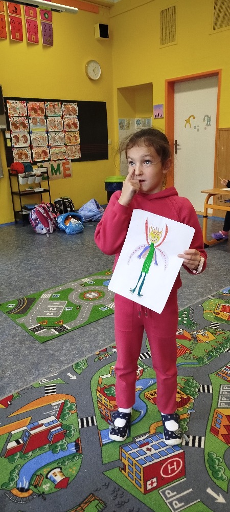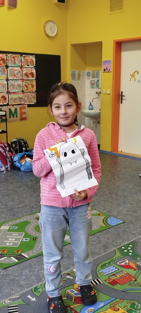 Nezůstáváme ale jen u her – začali jsme tvořit na téma podzim a Halloween. Děti se s nadšením pustily do kreslení strašidel, která si samy pojmenovaly.