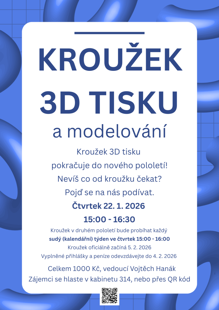 Také nás můžete navštívit ve čtvrtek 22. 1. 2026 od 15:00 do 16:30 v počítačové učebně 101.