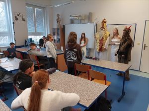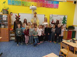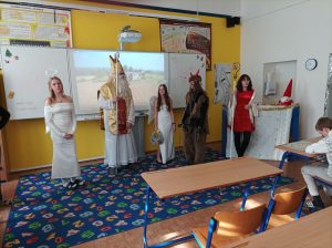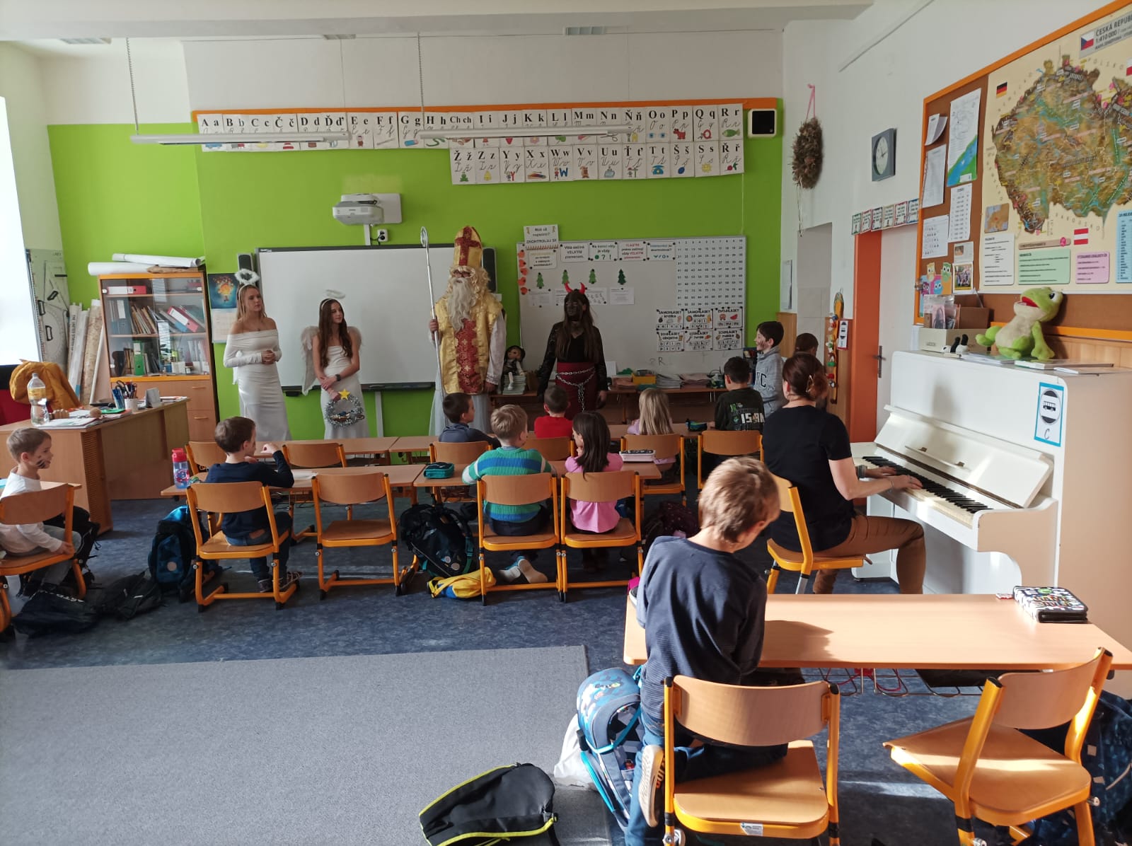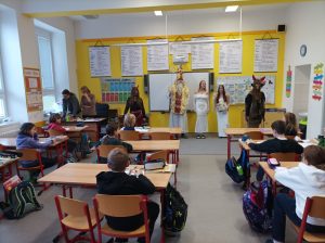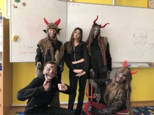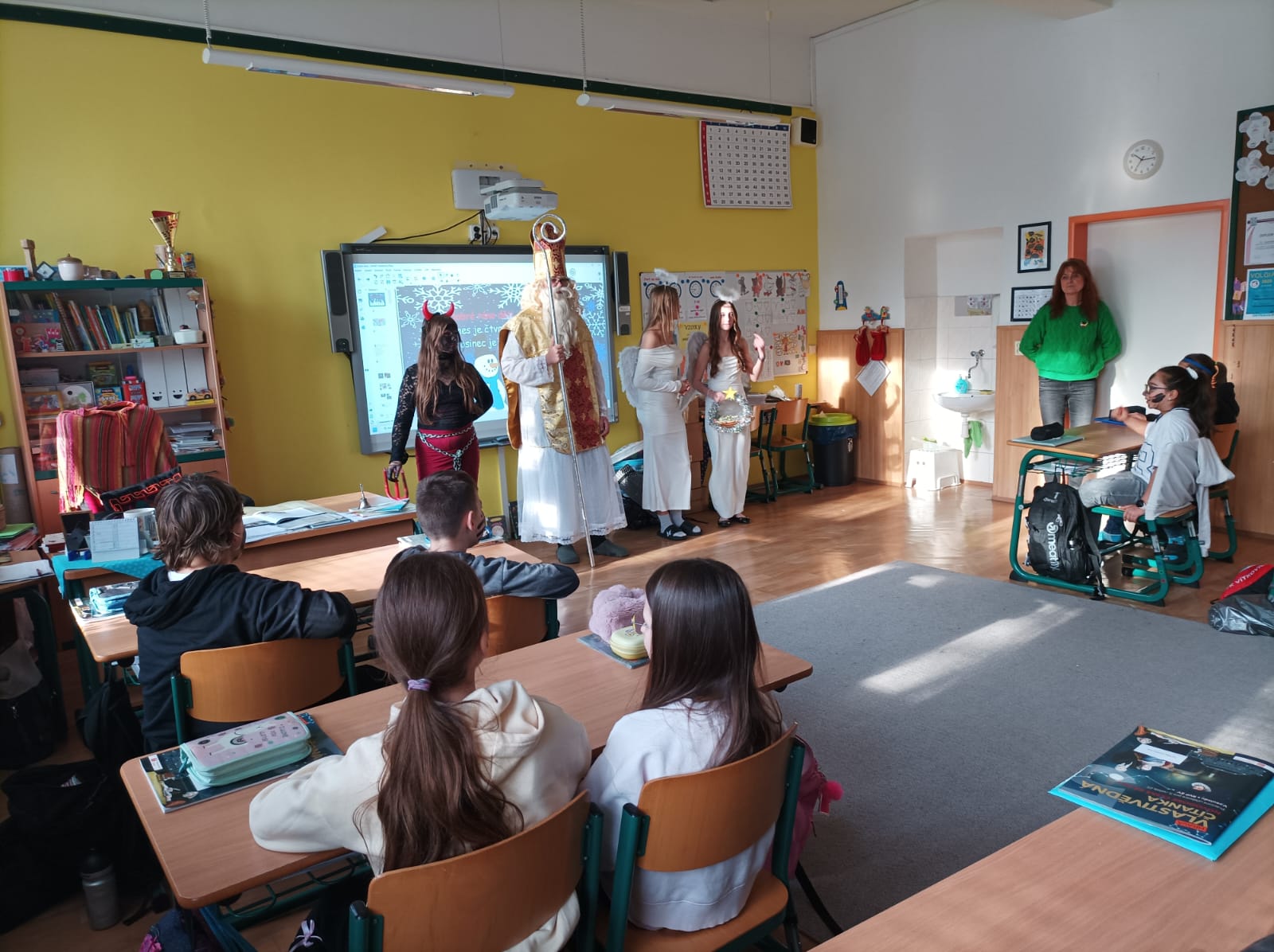 Ani letos naše škola nezapomněla na jednu z nejoblíbenějších prosincových tradic a tou je Mikuláš 😊čtvrteční den se tedy nesl v duchu napětí, smíchu, bouchání, černé barvy na obličeji a cinkání řetězů, protože naše školní chodby ovládla Mikulášská parta z 9.A a 9.B. Malí se báli a vykoupili se zazpíváním písničky nebo recitací básničky, velcí…no, ti se nechali raději pomalovat po obličeji, protože už ví, že žádné „peklo“ neexistuje.