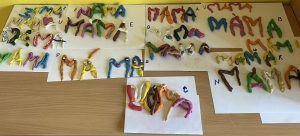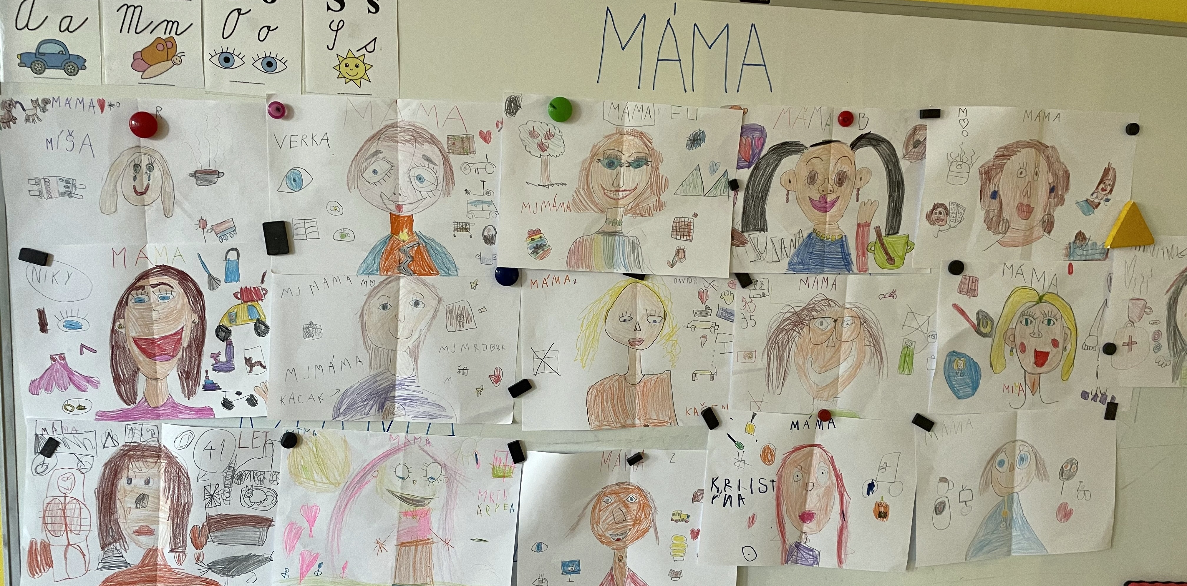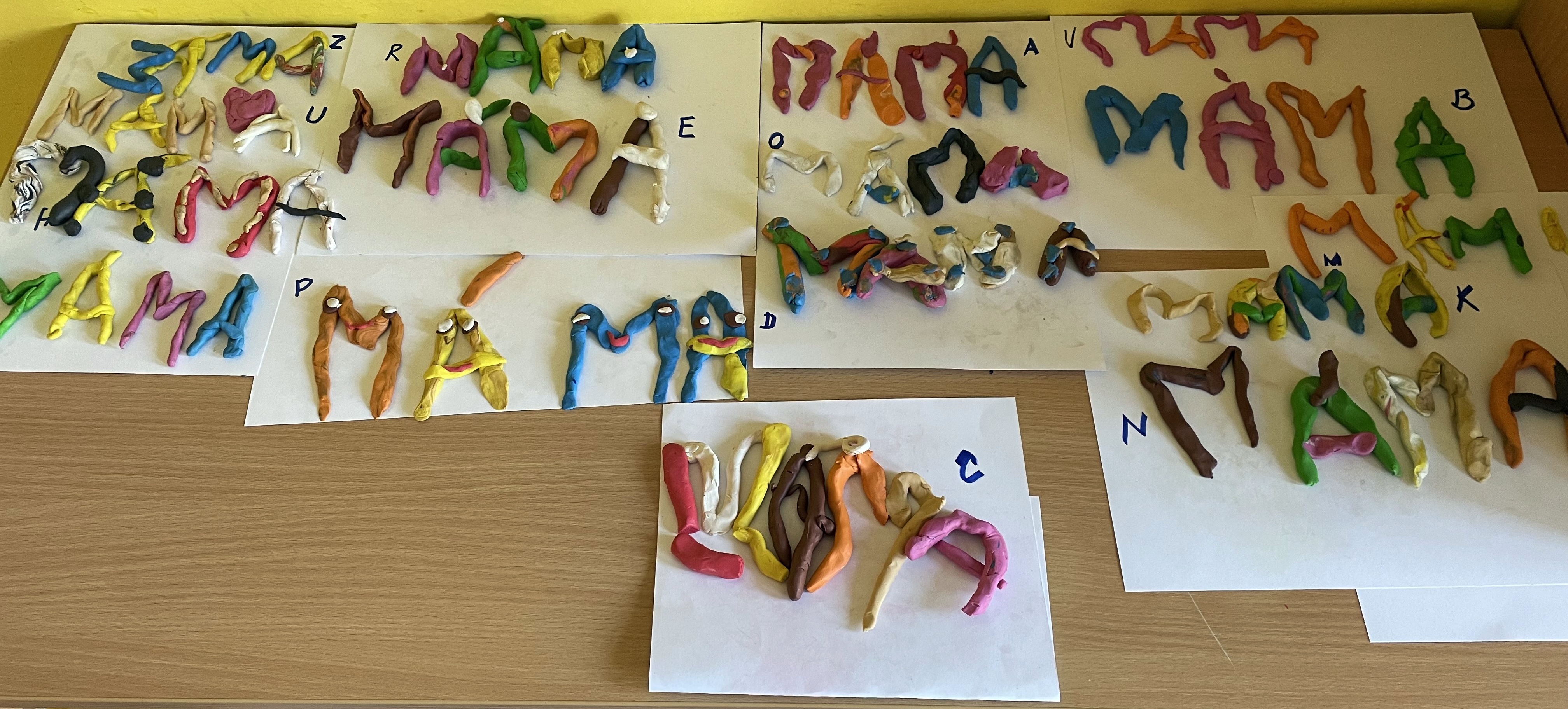 Prvňáčci v 1.C se učí číst a psát své první slovo – máma. K němu nakreslili portréty svých maminek a slovo vymodelovali z plastelíny. Podívejte se, jak se jim to krásně povedlo!