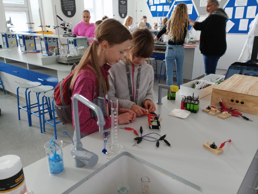 Během návštěvy se nám věnovali také dva další milí a vstřícní vyučující. Velké poděkování patří studentům sexty, kteří pro děti připravili devět interaktivních stanovišť. Na každém z nich si žáci mohli vyzkoušet něco nového, zapojit se do aktivit a poznat atmosféru školy zblízka.