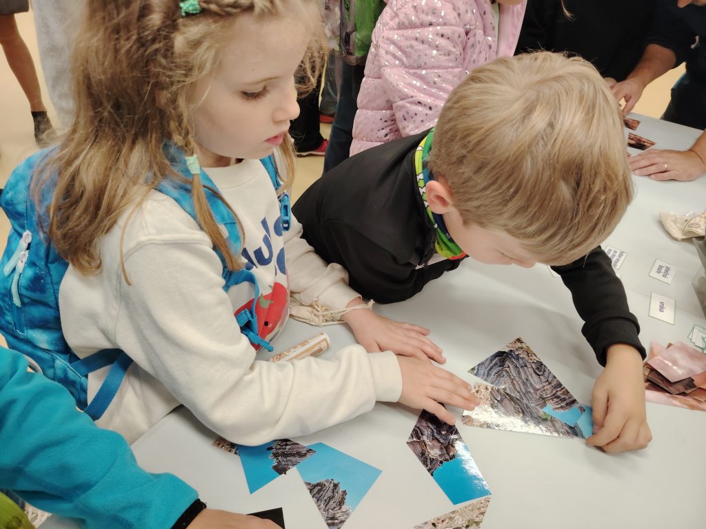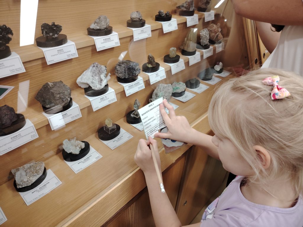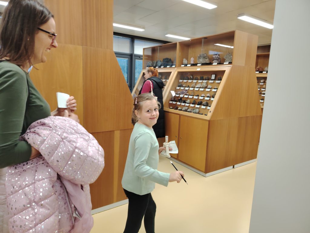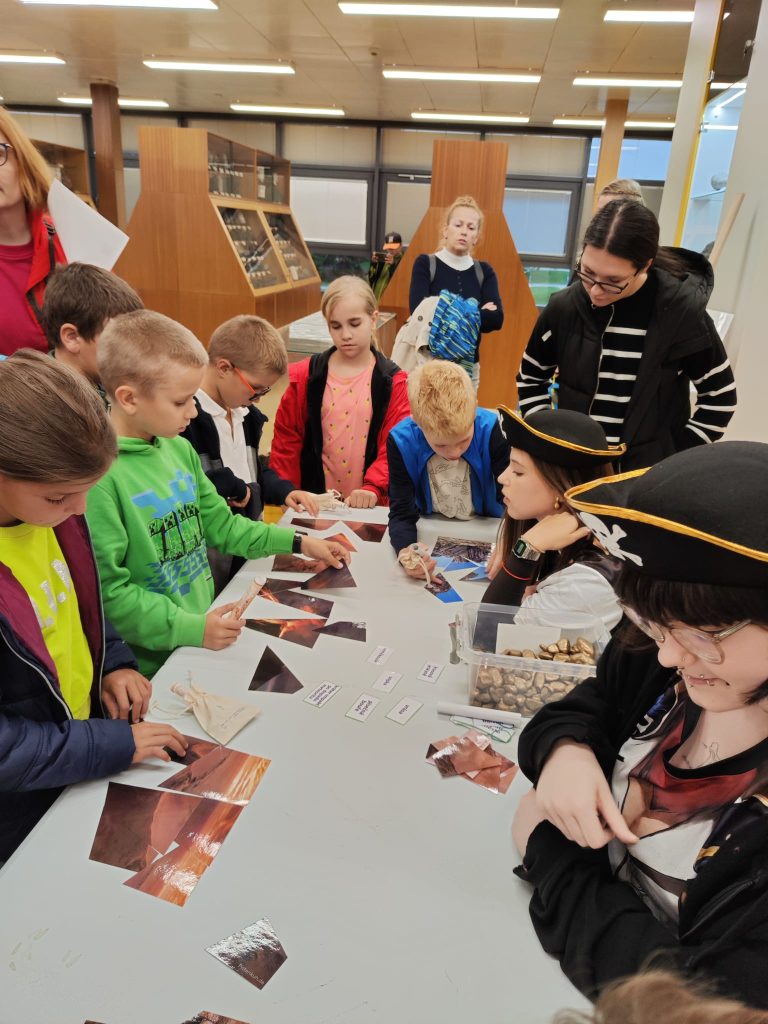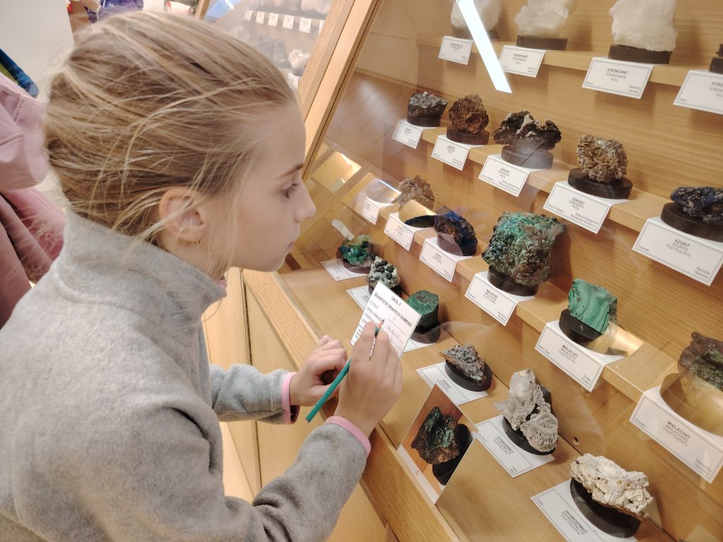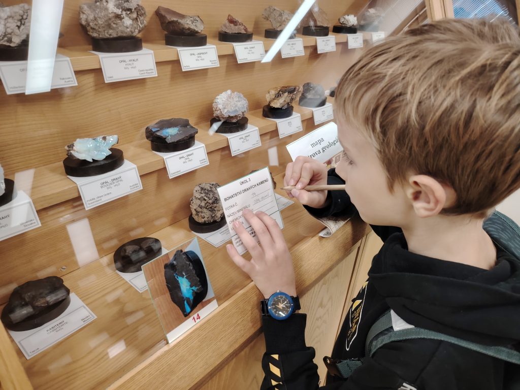 V pátek 26.9.2025 jsme se společně s dětmi a rodiči vydali na Geologickou fakultu VŠB, kde děti viděly nejen spoustu zajímavých věcí, ale mohly si toho i mnoho vyzkoušet. Nejprve je přivítali piráti, kteří jim předali mapu k pokladu. Děti na čtyřech stanovištích skládaly puzzle, určovaly jména minerálů, vyhledávaly je mezi exponáty, určovaly minerály a přiřazovaly výrobky, které jsou z nich vytvořeny.