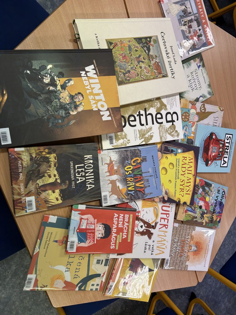 Díky finančnímu příspěvku od Česká knihovna Moravské zemské knihovny v Brnějsme mohli zakoupit celou řadu krásných, nových knížek. Děkujeme.