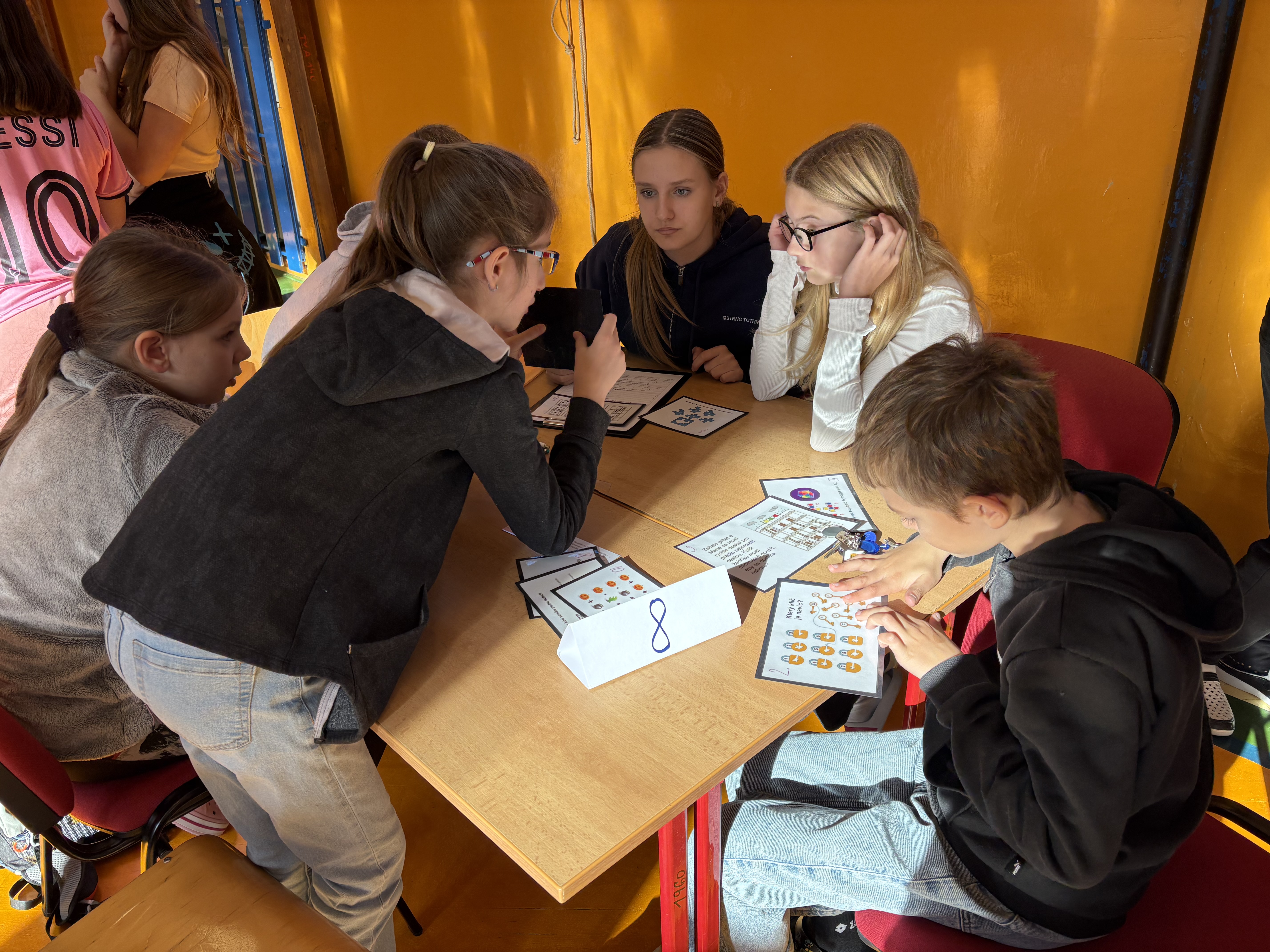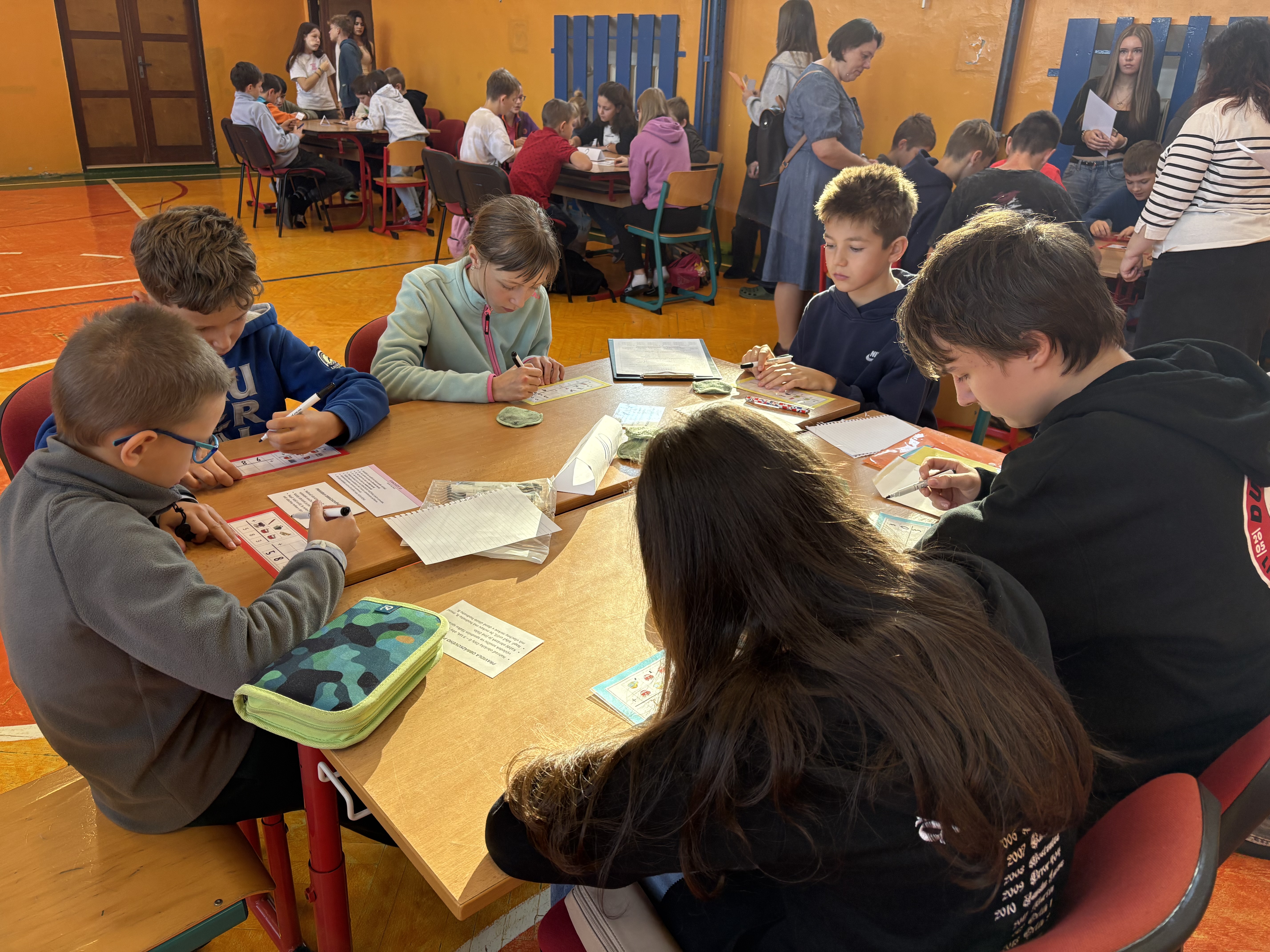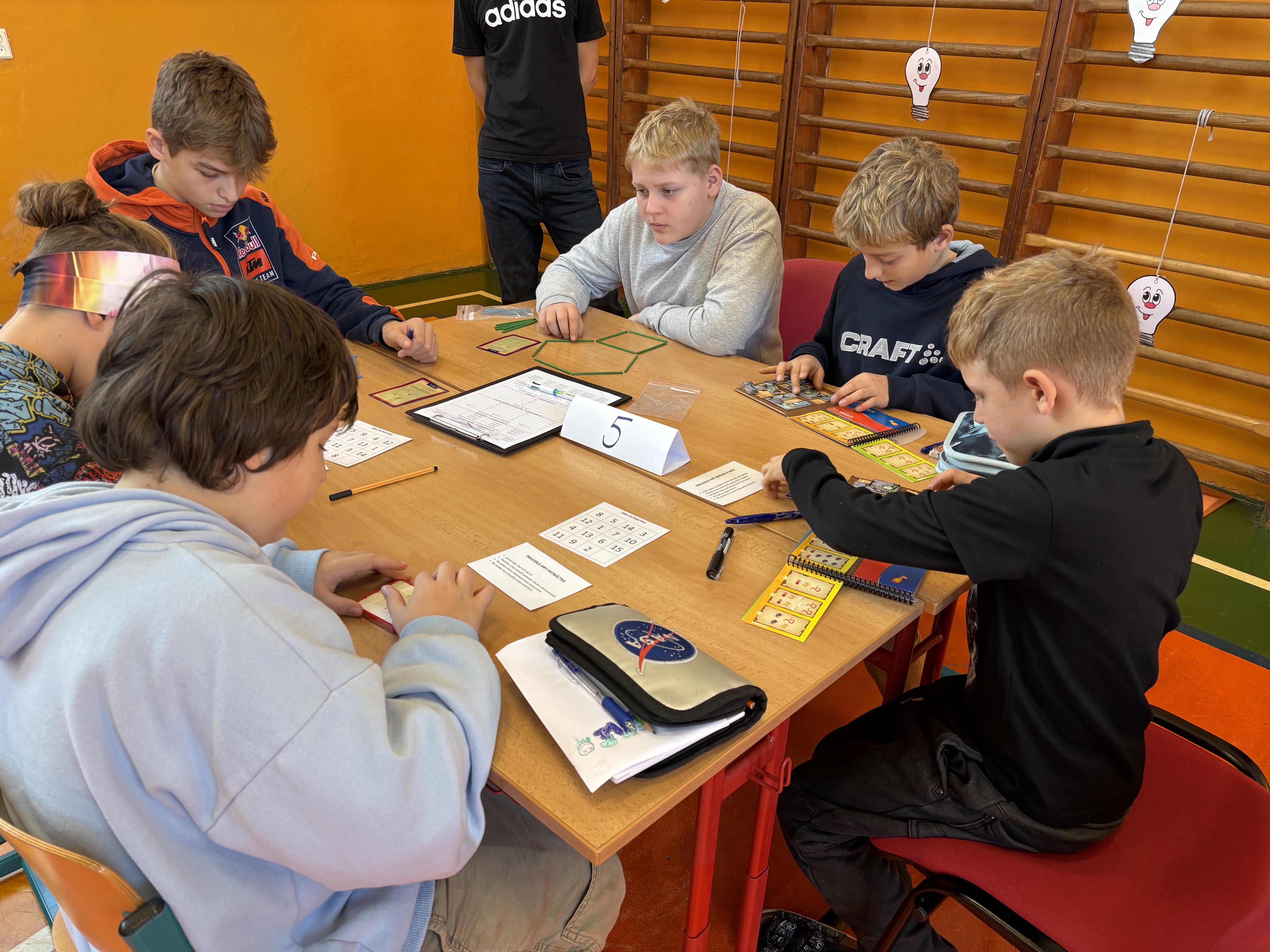 Týmy se během dopoledne musely poprat s různými úkoly na deseti stanovištích. Úkoly byly pestré a zábavné – děti skládaly Soma kostky, luštily hádanky, řešily tangramy a obrázkové příklady, vyzkoušely si i Kimovku a mnohé další.