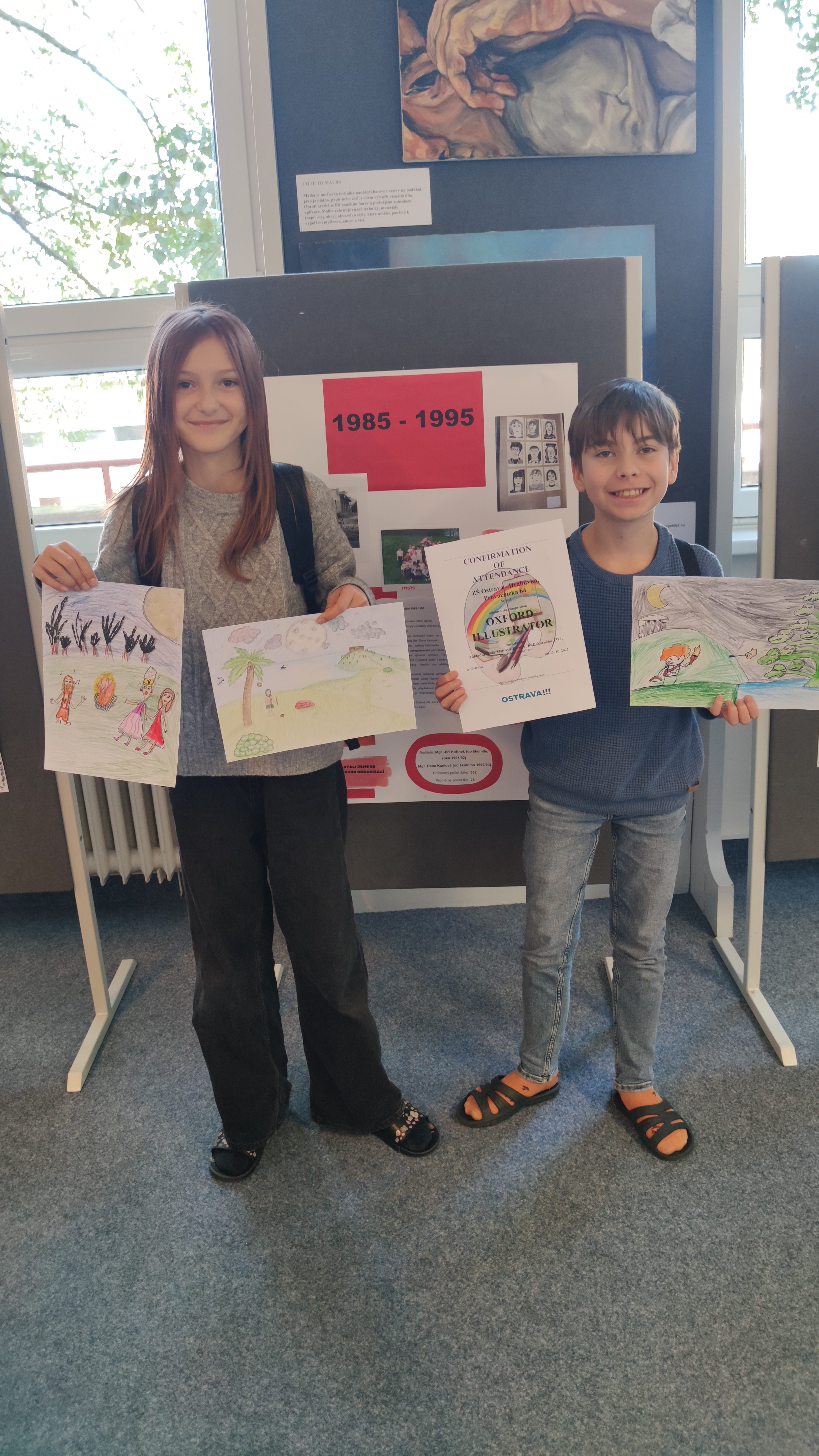 Ve čtvrtek 23. 10. 2025 se tři žáci naší školy – Lucie Hübner (5.A), Maxmilián Kopčo (6.A) a Marie Podjuklová (9.A) zúčastnili anglicko-výtvarné soutěže Oxford Illustrator, kde museli ukázat nejen své znalosti anglického jazyka, ale rovněž své výtvarné nadání. Na vítězných příčkách se sice nikdo z nich neumístil, ale vytvořili krásná díla a my jim moc děkujeme za vzornou reprezentaci naší školy 😊