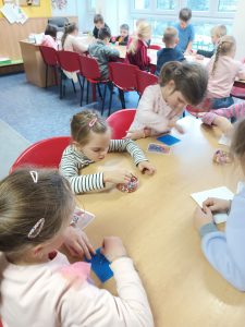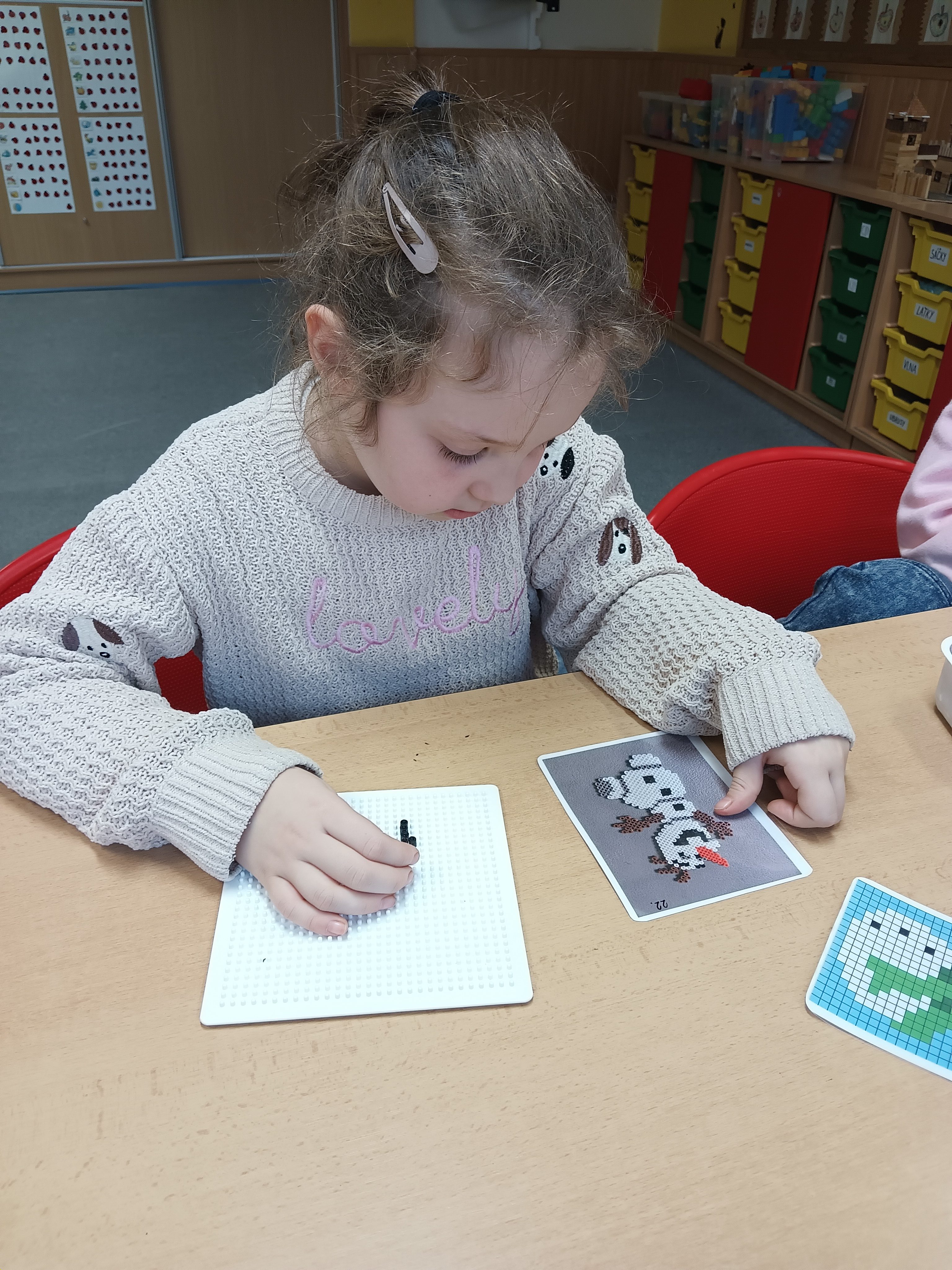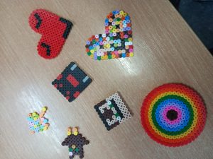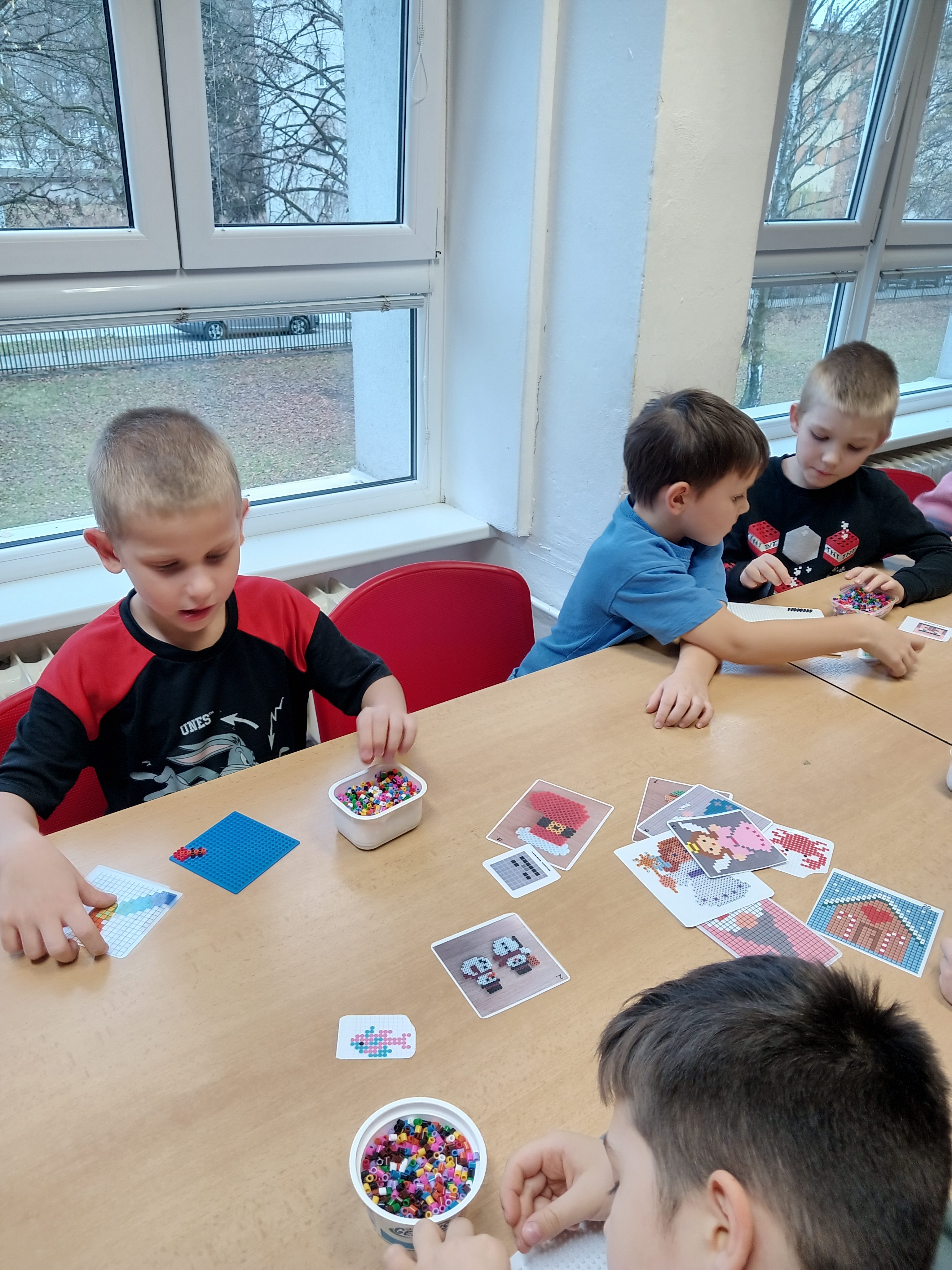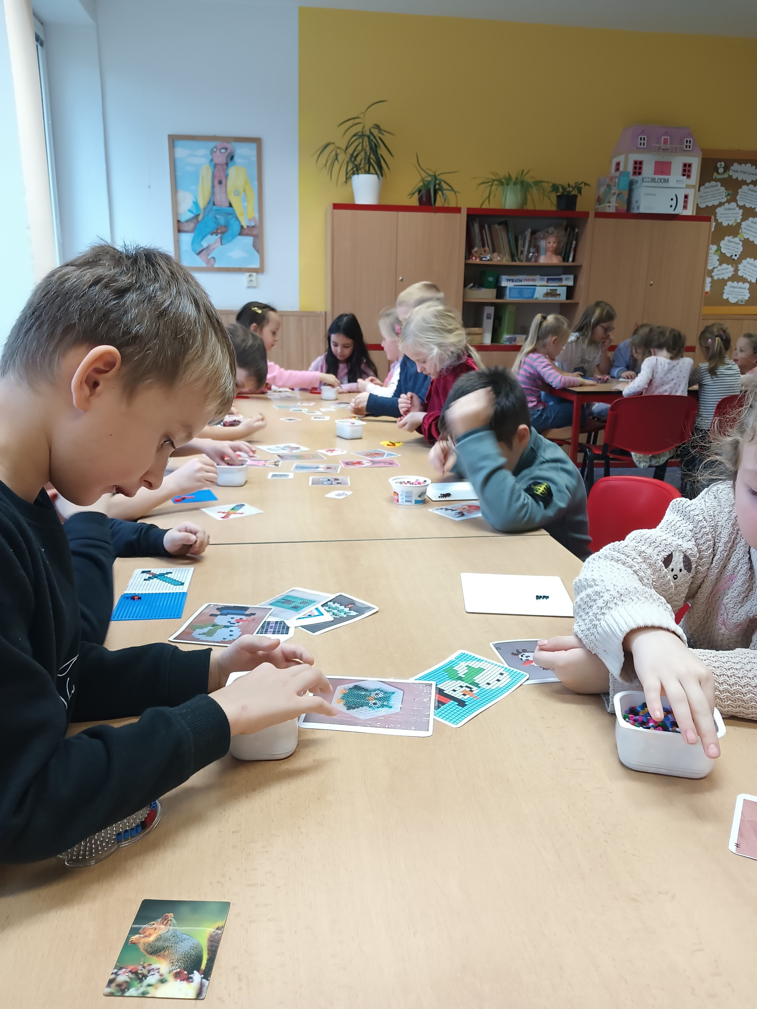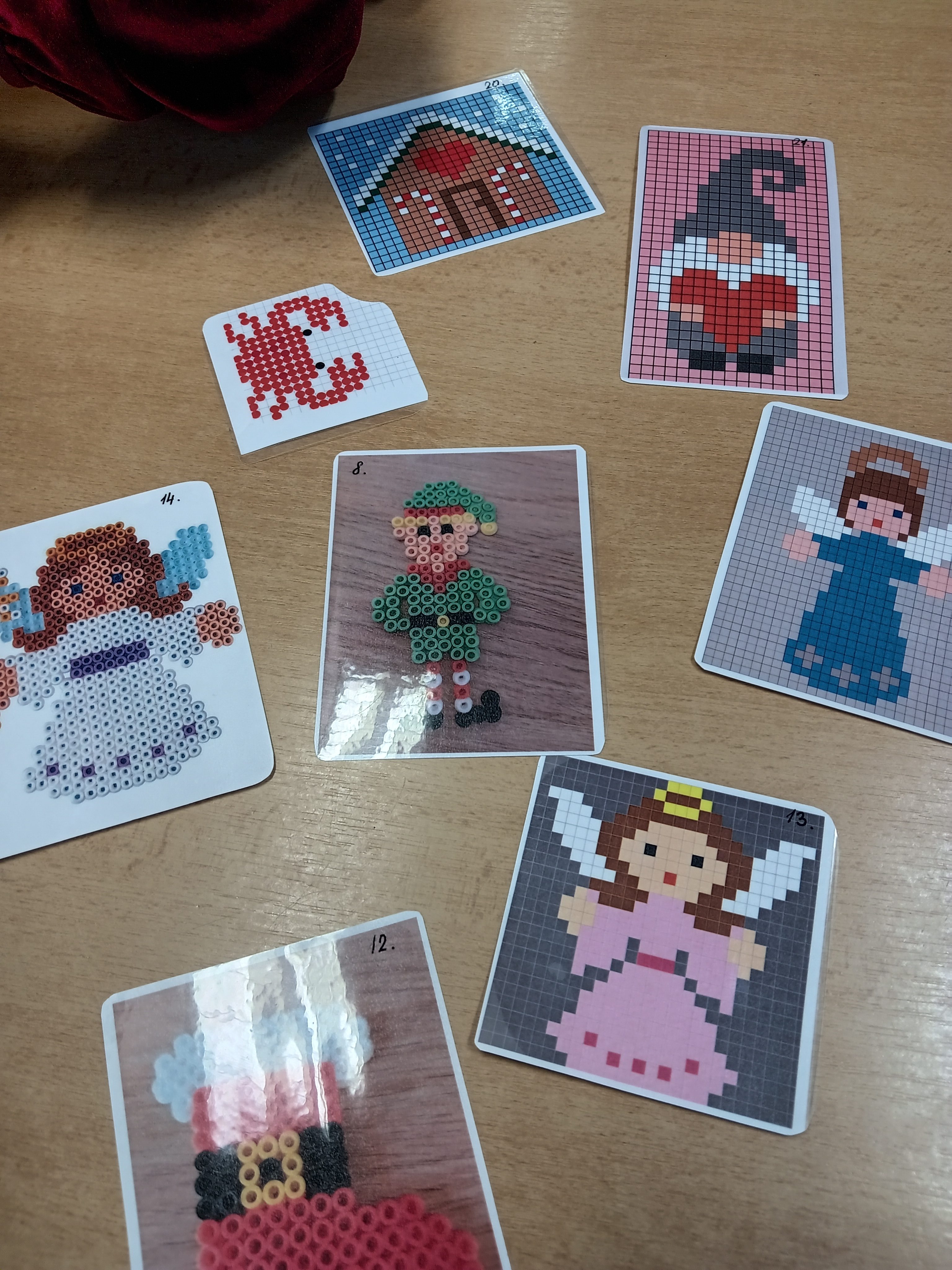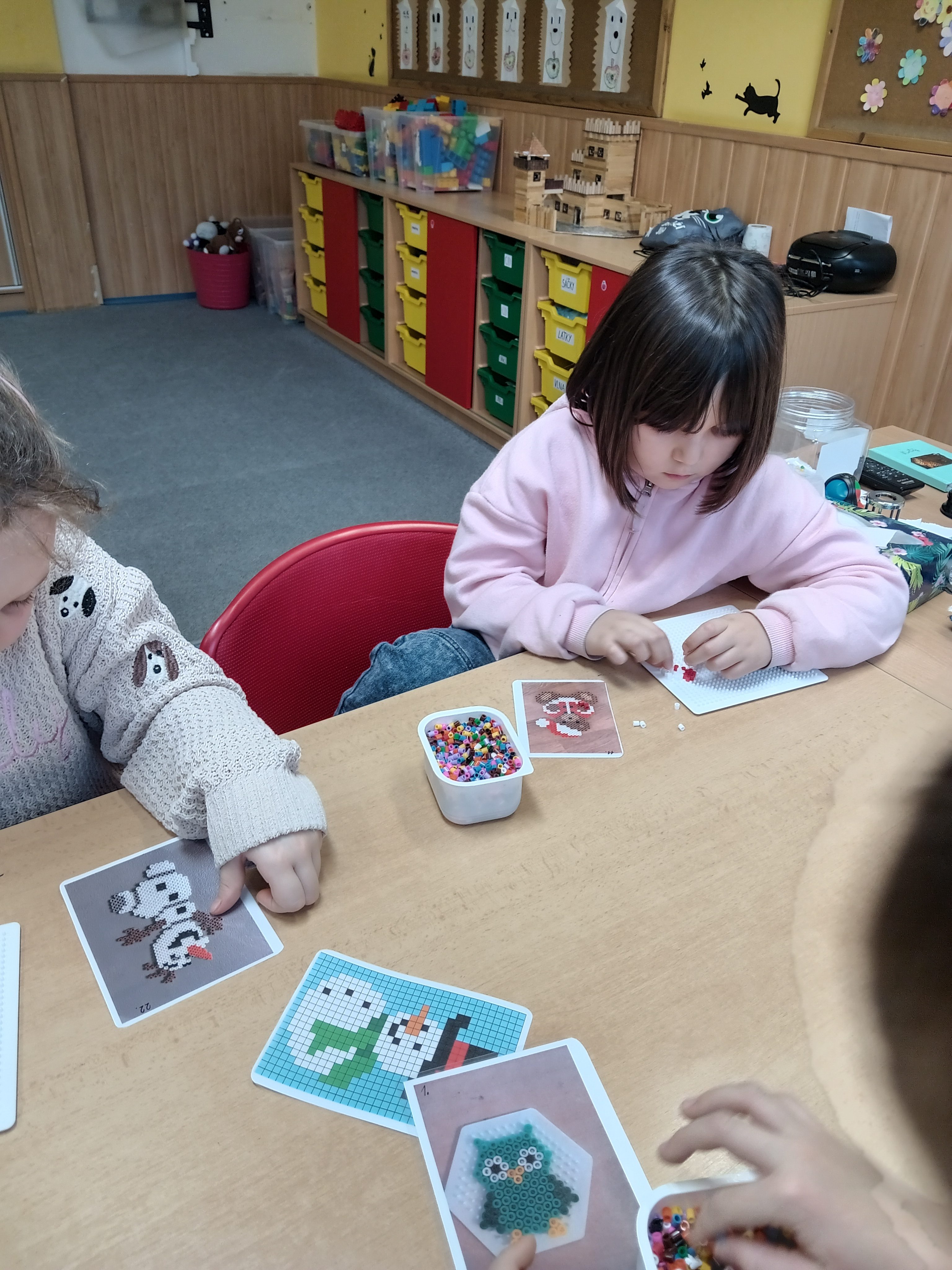 V oddělení Berušek vypuklo doslova korálkové šílenství. Všechny děti propadly kouzlu barevných korálků a s velkým nadšením vytvářely obrázky – některé podle předlohy, jiné zcela podle vlastní fantazie. Hotové výtvory jsem dětem přežehlila, aby si je mohly odnést domů a uchovat jako milou památku.