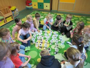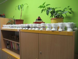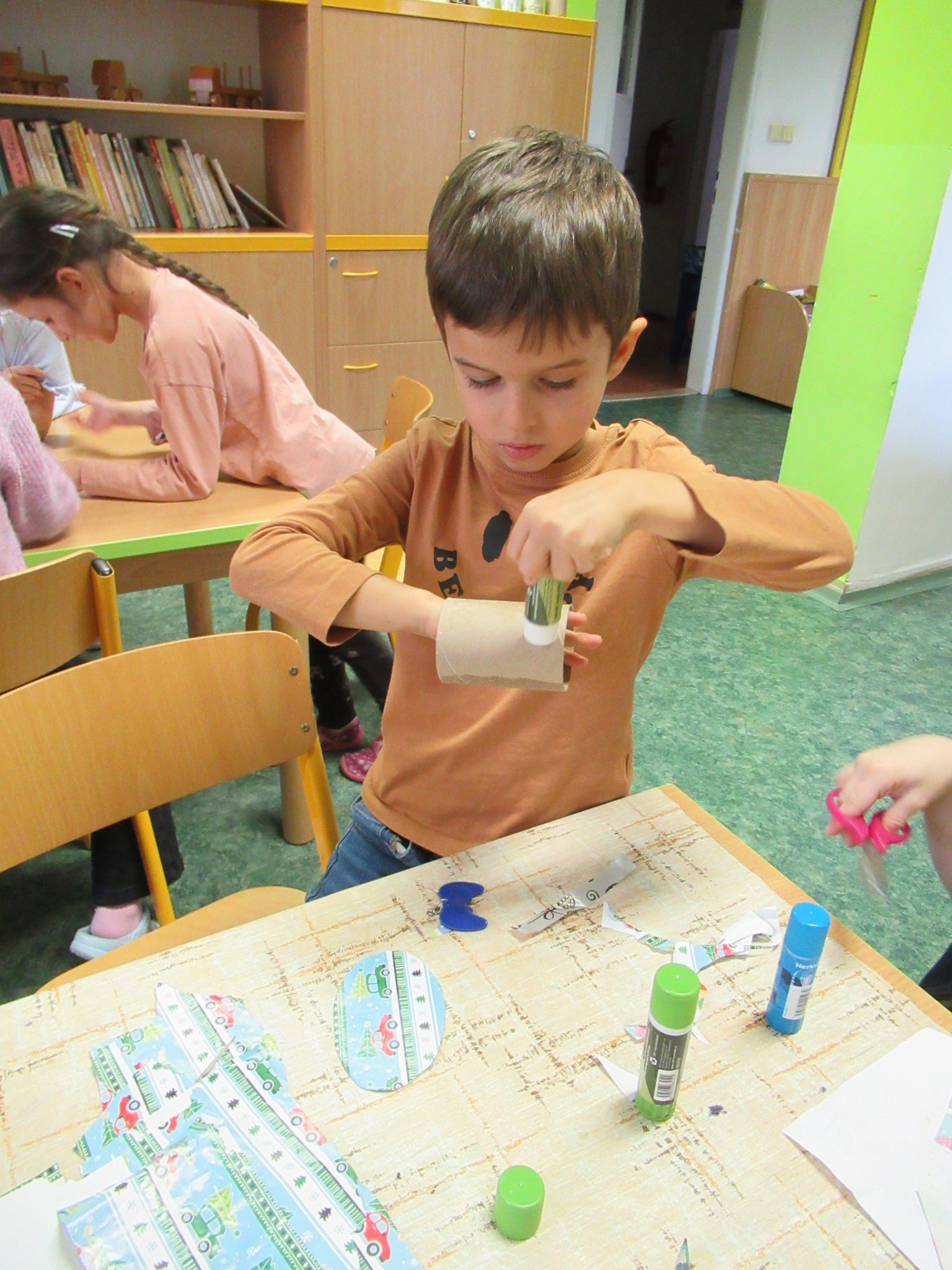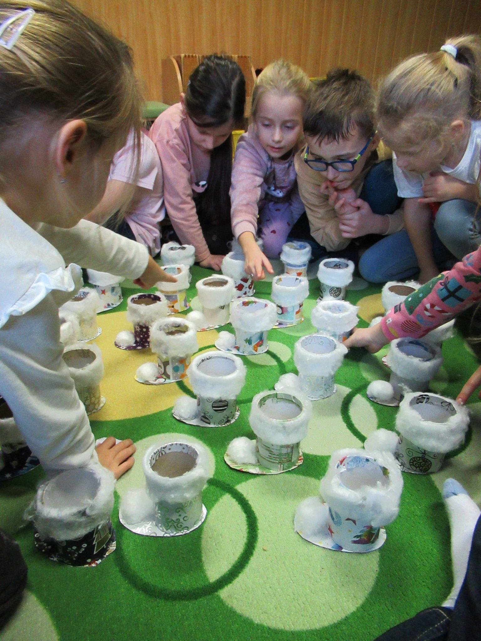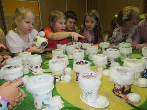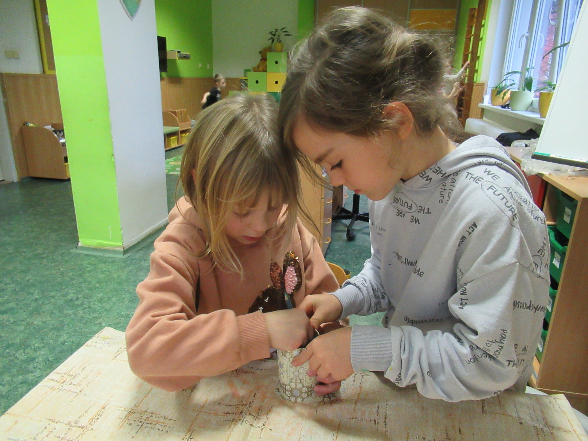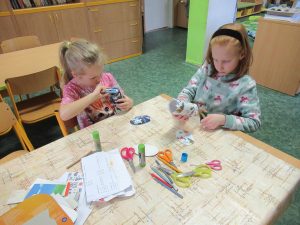 V našem oddělení jsme se s dětmi pečlivě připravovali na tradiční mikulášskou nadílku. Děti si vyrobily své vlastní mikulášské botičky z ruliček od toaletního papíru. Nejdříve je obalily vánočním papírem. Každý si vybral papír, který se mu nejvíce líbil. Poté děti vystřihly a obalily spodek botičky. Jednotlivé části slepily k sobě a postupně tak vznikla krásná botička připravená na sladké překvapení. Paní vychovatelka všechny botičky ještě dozdobila vatou. Vytvořila lem a malou bambulku, čímž botičky získaly slavnostní vzhled. S netrpělivostí pak děti čekaly na příchod Mikuláše s čertem a jeho družinou.