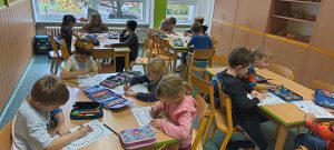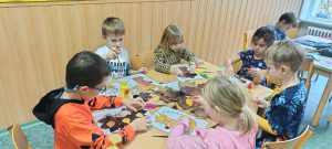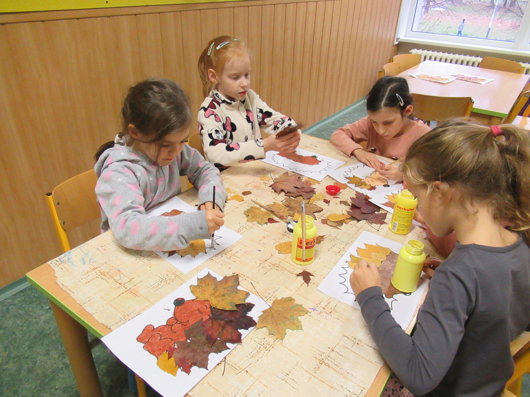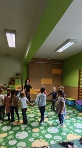 Listy jsme poté pečlivě nasušili a připravili na další tvoření. Venku jsme si zároveň užili i mnoho pohybových aktivit. Oblíbenou se stala hra „Na lišku a honce“, při které si děti procvičily rychlost, obratnost i spolupráci. V družině jsme navázali tanečními hrami, například „Zajíček v své jamce“, které dětem přinesly spoustu radosti a veselí.
