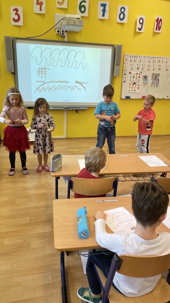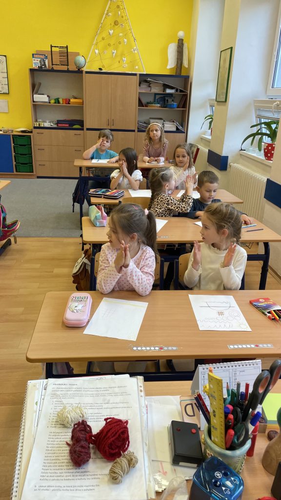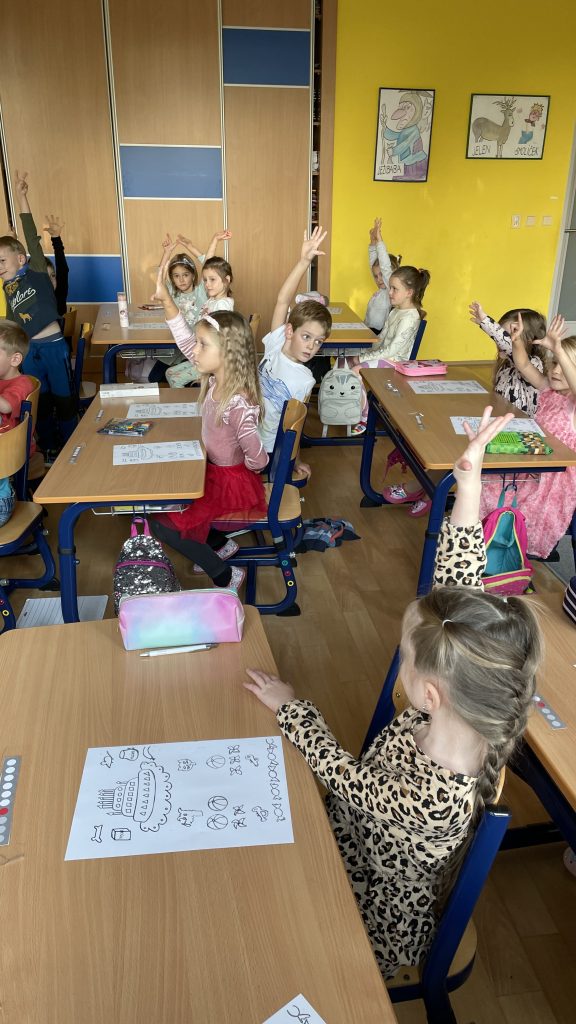 Naše škola přivítala budoucí prvňáčky na odpoledním setkání plném pohádkového učení. Děti si vyzkoušely, jak to ve škole chodí – uvolňovaly ruku při psaní, soutěžily jako pejsek a kočička a počítaly ozdoby na dortu. Nechyběla ani Kimova hra na paměť ani zábavné úkoly na procvičení sluchu a hlásek. Celé odpoledne se neslo v radostné atmosféře, ve které se děti nejen bavily, ale také přirozeně učily. Předškoláci odcházeli nadšení a už se těší na další společné setkání i na svůj první školní den!