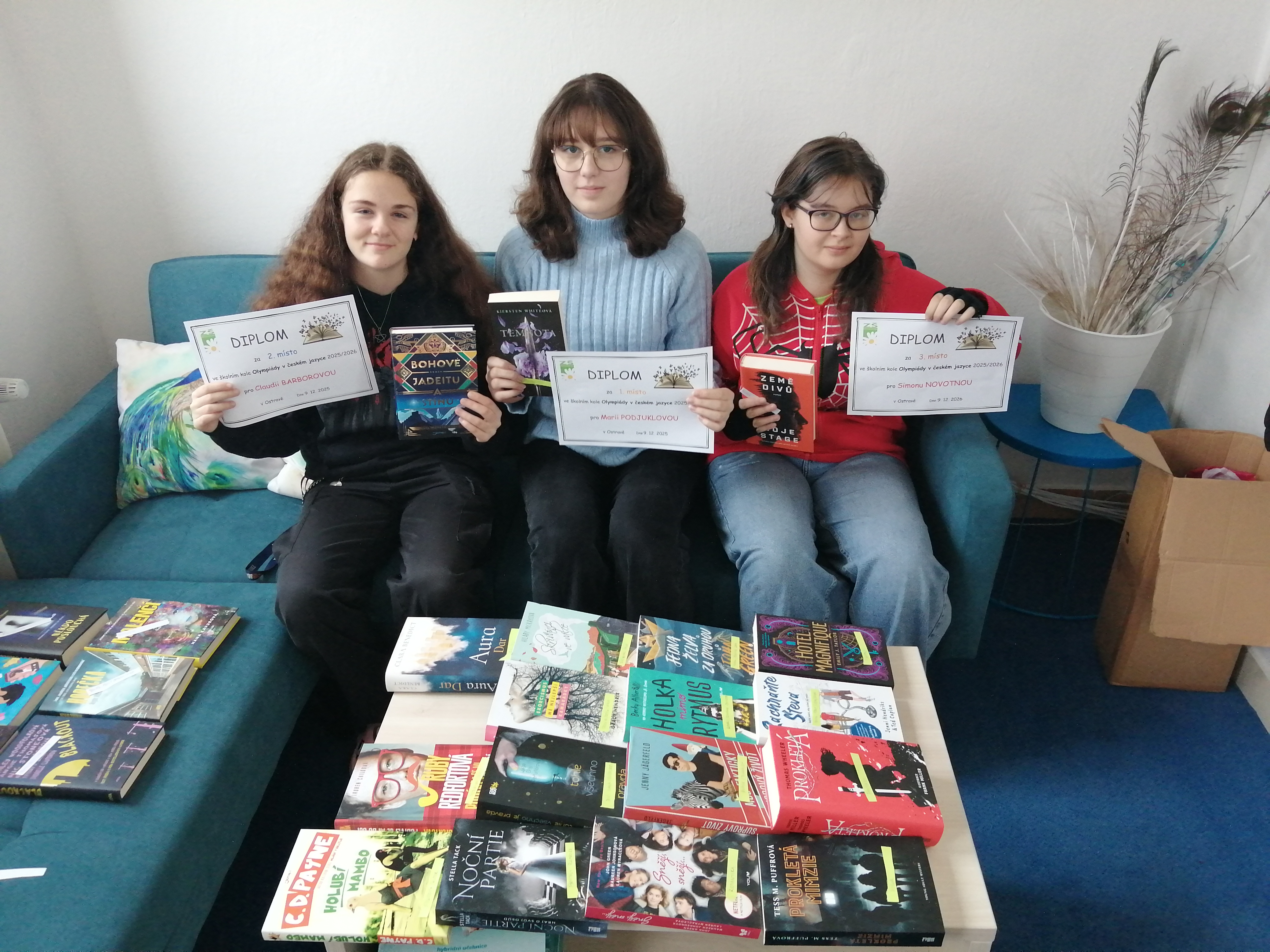 Ve čtvrtek 27. listopadu 2025 proběhla na naší škole olympiáda v českém jazyce, které se zúčastnilo 12 žáků osmých a devátých ročníků. Na 3. místě se umístila Simona Novotná z 9. A, na 2. místě Claudie Barborová z 8. B a vítězkou se stala Marie Podjuklová z 9. A. Všem soutěžícím děkujeme za účast a vítězům gratulujeme k vynikajícím výsledkům. Postupujícím do okresního kola přejeme hodně úspěchů!
