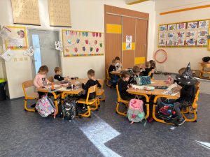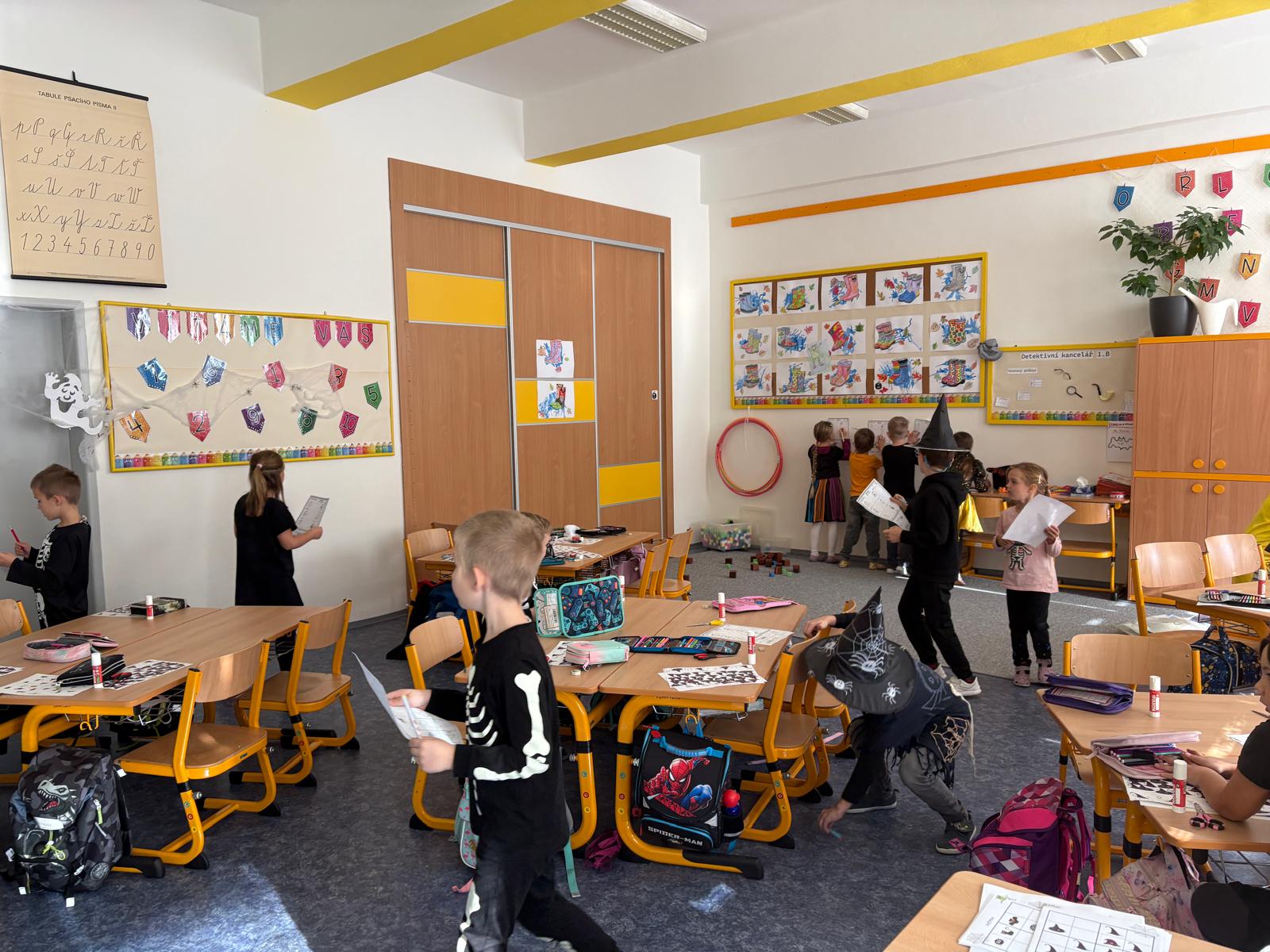 Žáci 1.A a 1.B si užili veselou halloweenskou hodinu plnou zábavy! Hledali jsme svou dvojici, společně jsme si zatančili a nakonec nakreslili krásné (a někdy i trochu strašidelné) příšerky. 👻